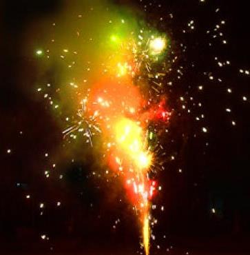 3. Белые трещащие, разлетающиеся вспышки, красные, золотые, зеленые огни.