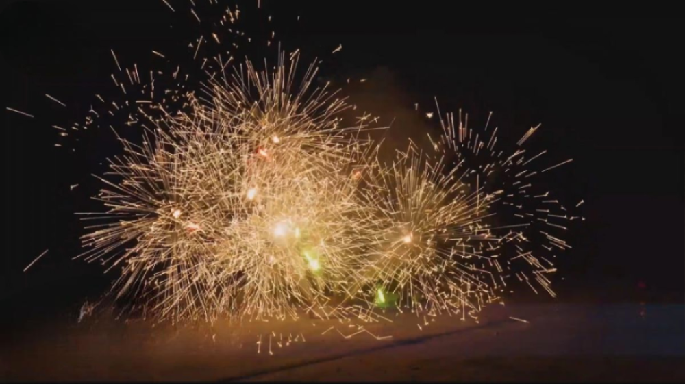 2. Золотые трещащие вспышки и зеленые огни.